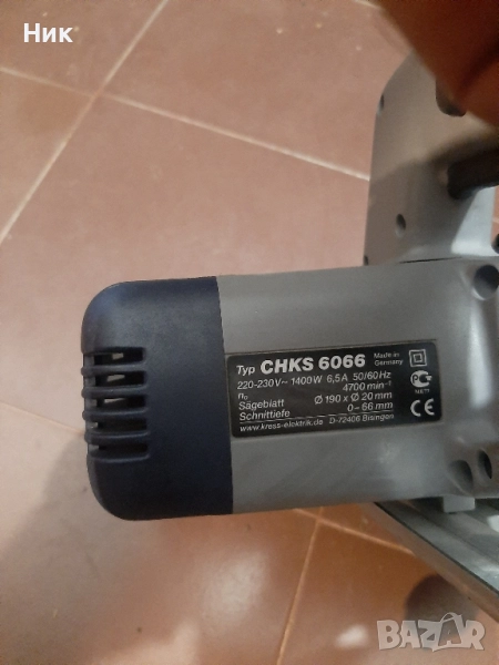 Електрически ръчен циркуляр на Кресс в отлично визуално състояние както се вижда на снимките и работи перфектно, оригинално немско производство-200лв