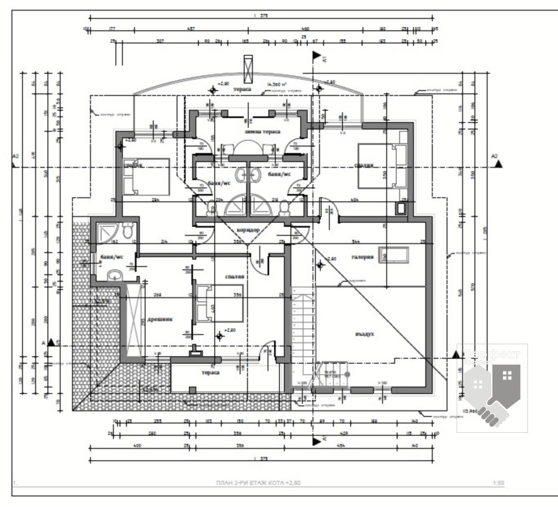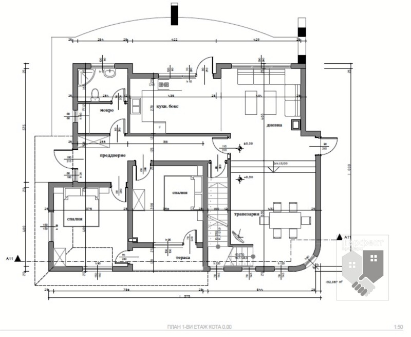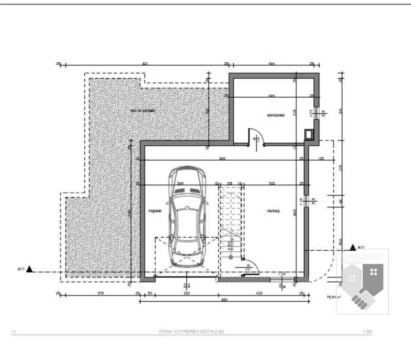 Къщата е със самостоятелен вход както и топла връзка от гаражите.