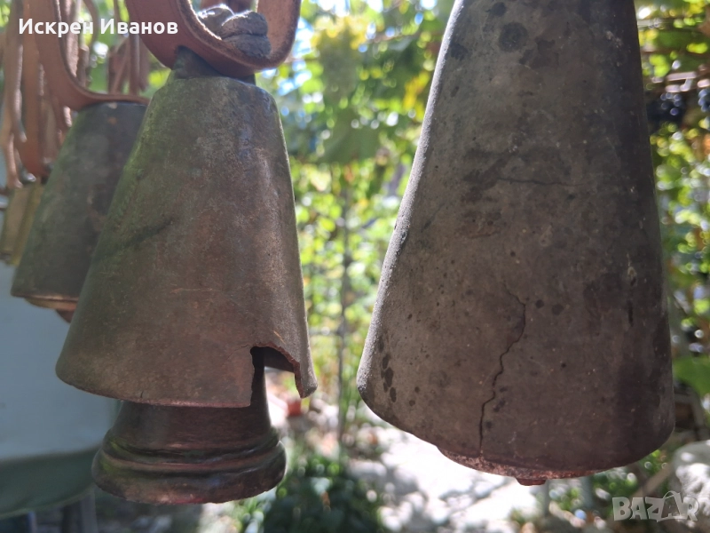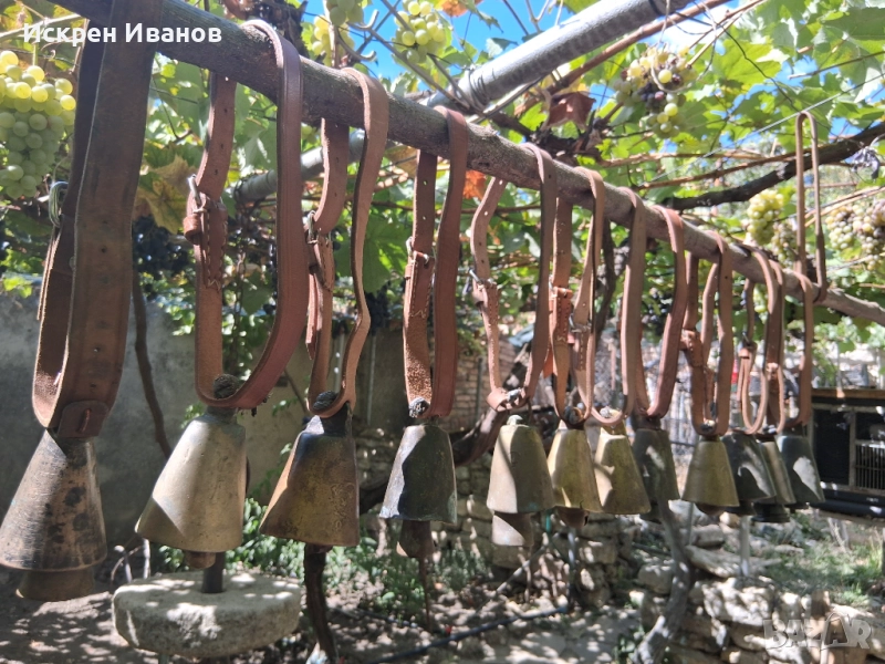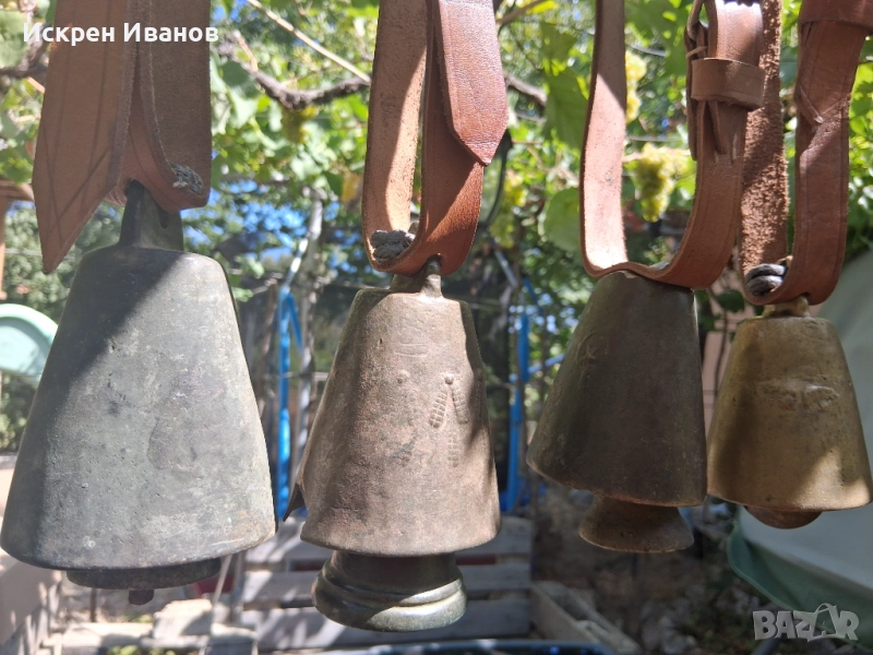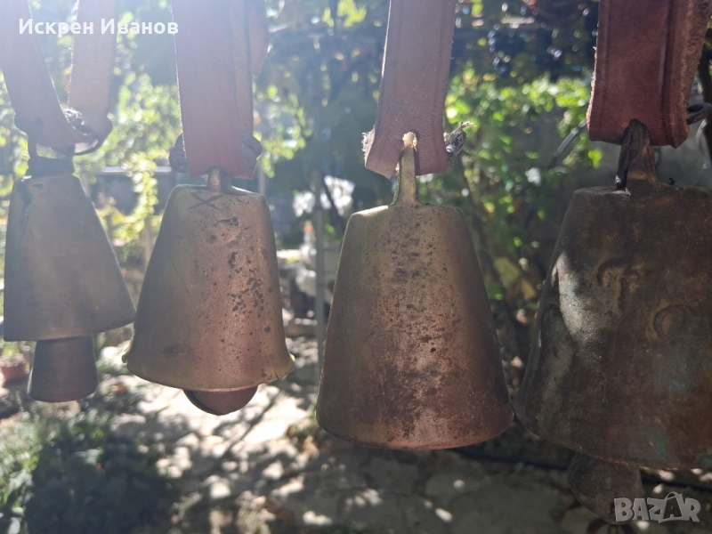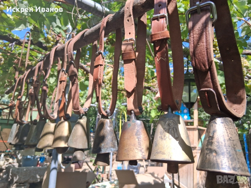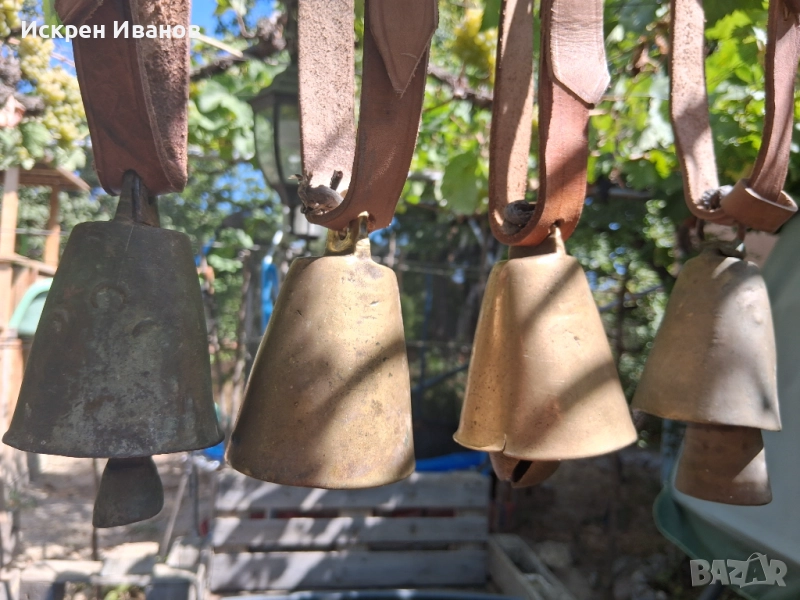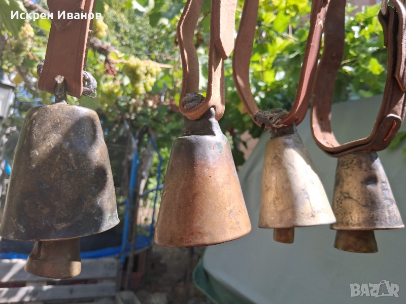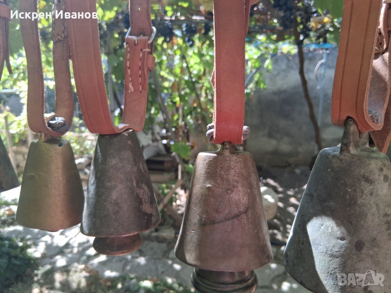 Здравейте, на Вашето внимание 12 броя стари доста поработили чана, някой с дефекти и спуквания (цената е съобразена с това) на снимките всичко се вижда. Имат каишки от естестена кожа (+2 подарък за окачване)