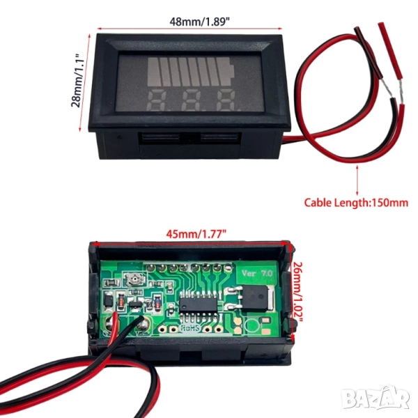 напрежения от 12V до 60V - подходящ за автомобили, скутери, соларни системи
