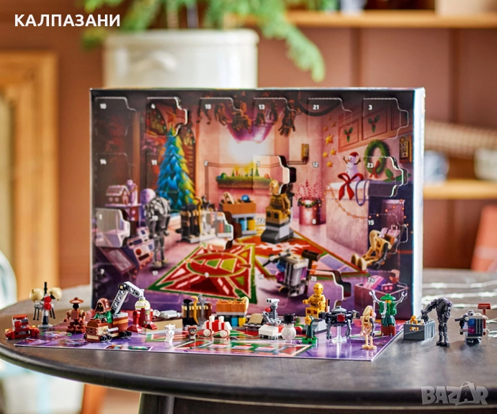 Коледен календар с коледни подаръци от Star Wars™, включително фигури LEGO® на дроиди и миниконструкции, за да създадат децата работилница на Бабу Фрик.
