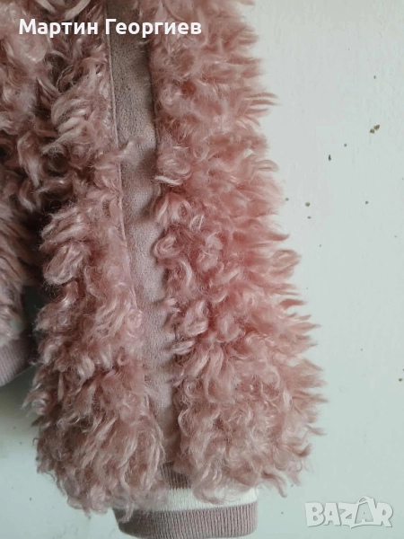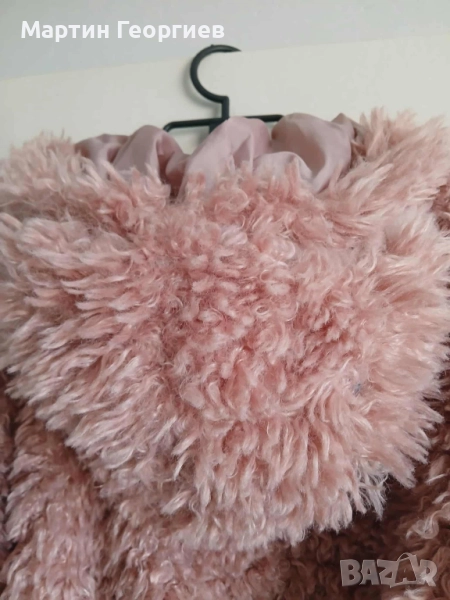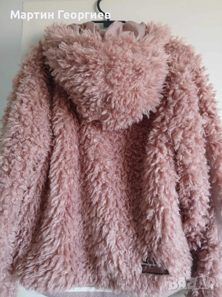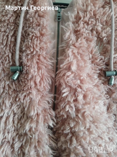 Много красиво топло и уникално преходно яке.Цвят- розов.Има качулка която може да се сваля.Пухено е.Има два джоба отвън и един вътрешен.