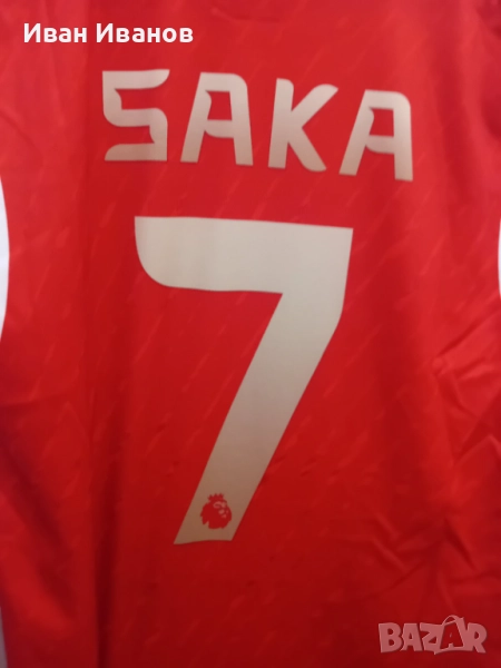 Чисто нова оригинална фланелка на Арсенал на Букайо Сака. Не е обличана никога, само е съхранявана. Закупена е от феншопа на Емирейт стейдиъм. Размер S.