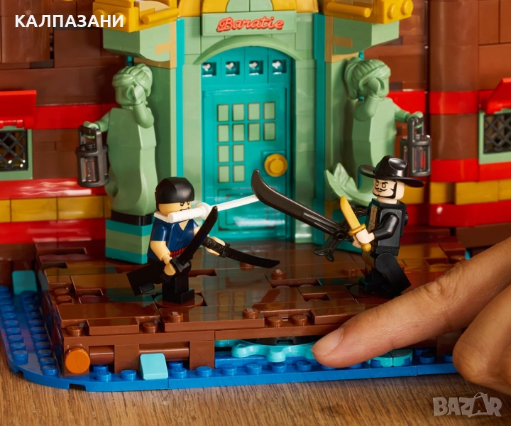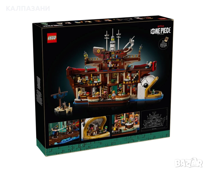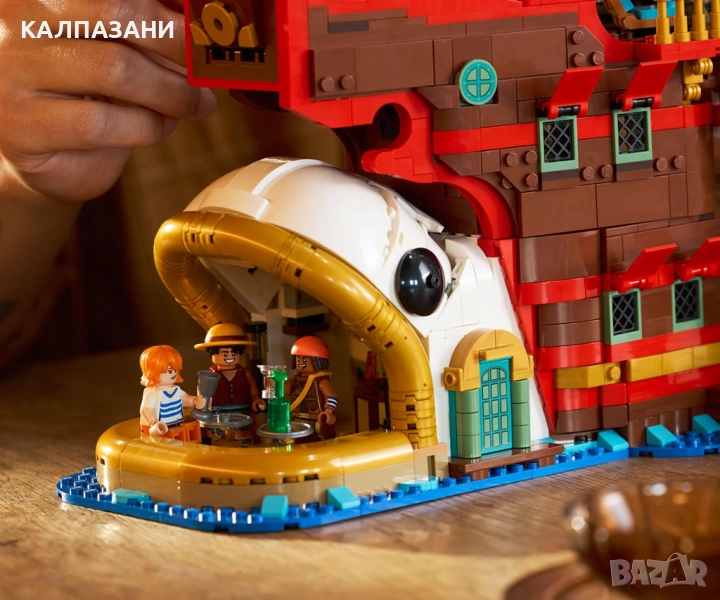 LEGO® ONE PIECE Плаващ ресторант „The Baratie“ е фентъзи украса за възрастни с 10 минифигури, включително Luffy, Zoro и Mihawk.
