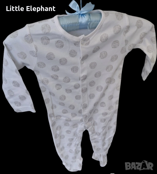 Цяла пижамка ромпърче за момченце на 9-12 мес,големи сиви рочки,колекция"Points",Англия/нова → Обява 51642122