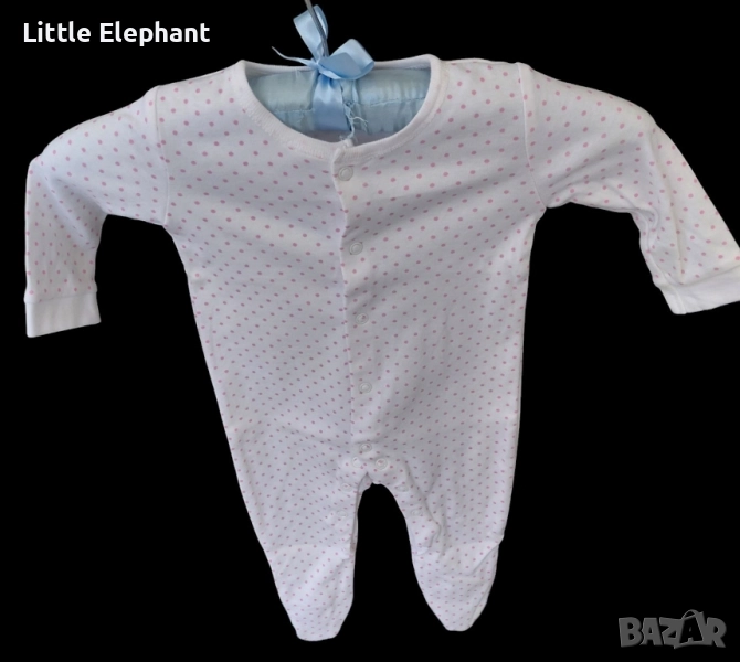 Цяла пижамка ромпърче за момиченце на 12-18 мес бяла на розови точки колекция"Points",Англия/нова → Обява 51643204