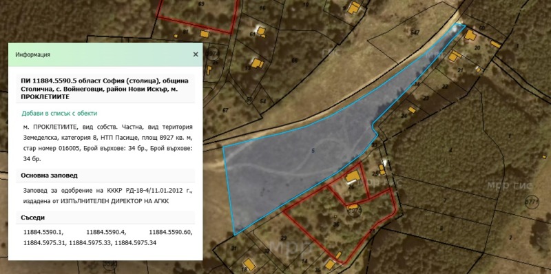 Продава ПАРЦЕЛ, гр. София, с. Войнеговци → Обява 51643443