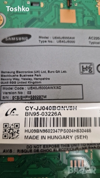 SAMSUNG UE40J5000AW MAIN BOARD BN41-02098B BN94-10851N POWER BOARD BN44-00852A PANEL CY-JJ040BGNV8H → Обява 51643724