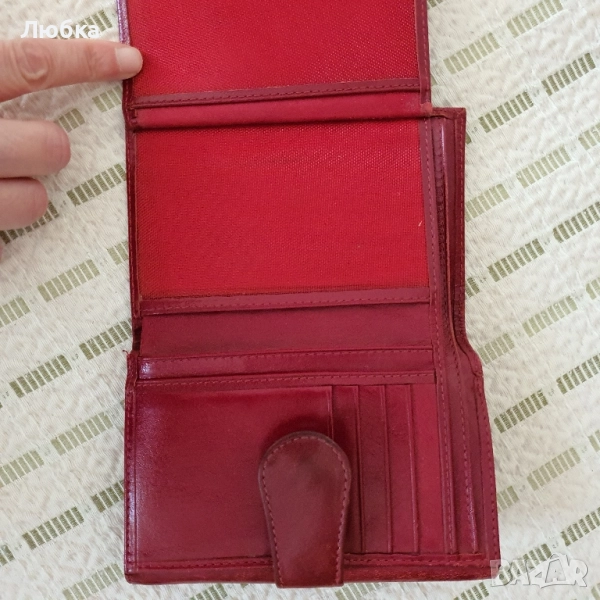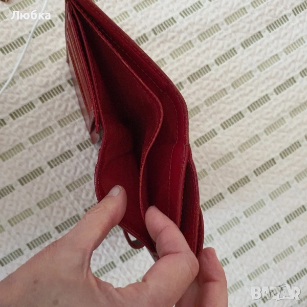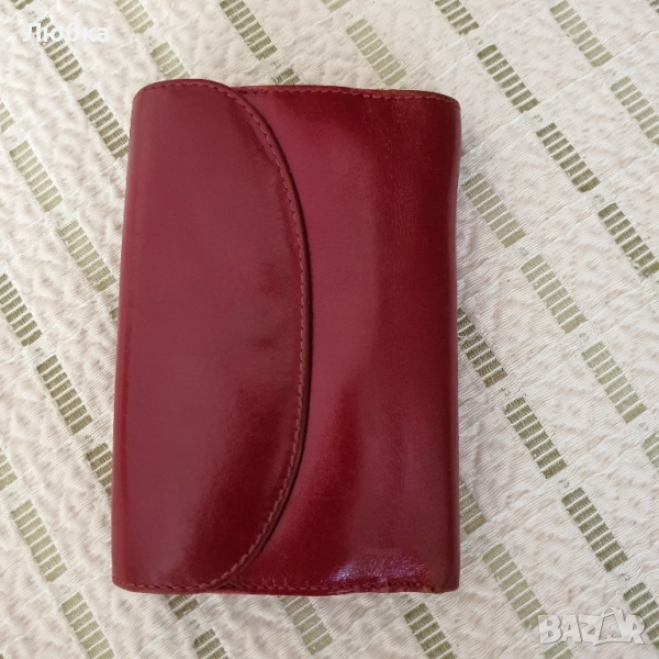 Дамско портмоне, естествена кожа. Има следи от употреба, няма скъсано. Червен цвят.