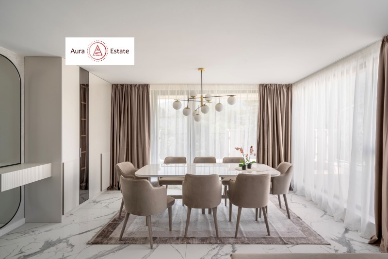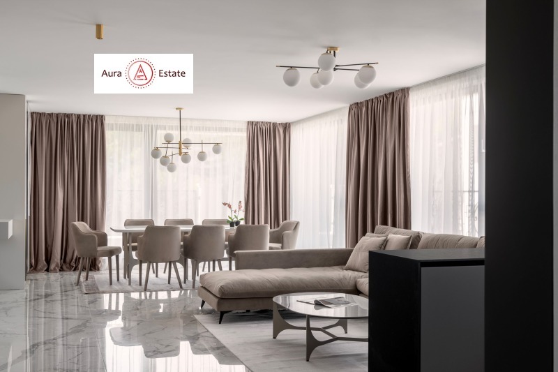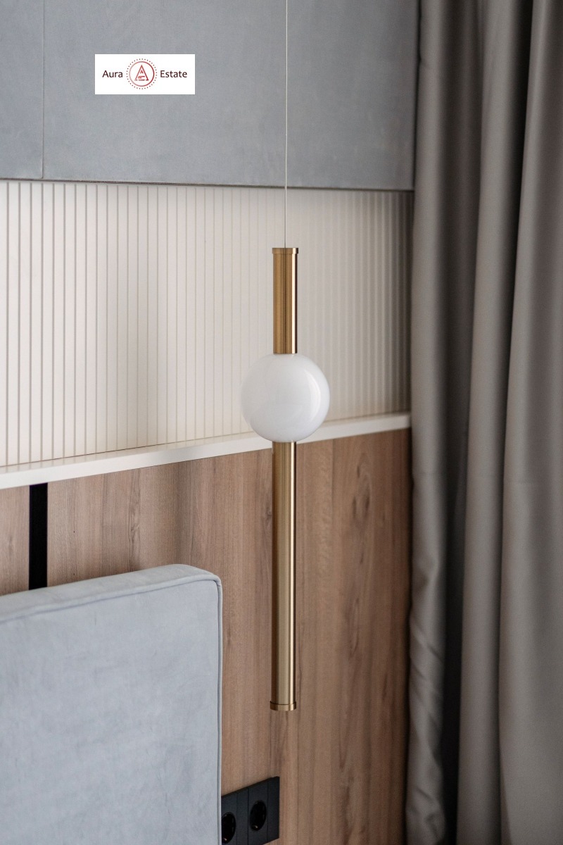 Апартаментът е цялостно обзаведен по дизайнерски проект, съчетаващ стил, функционалност и комфорт. Пространствата са внимателно обмислени, а всеки елемент е подбран с вкус и отношение към качеството на живот.