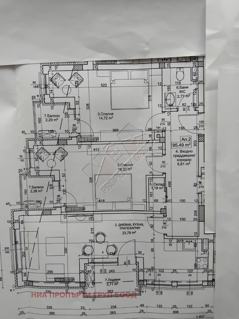 Трисатен апартамент с общата площ е 110,60 кв.м, намиращ се на втори етаж в четириетажна сграда