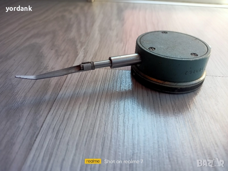 Съветски индикаторен часовник 0,01мм. Използва се за измерване на плоскост, биене и сравнение на височини.