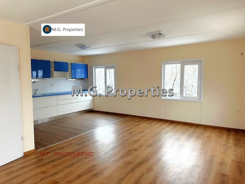 Първи етаж - просторна дневна с много светлина, обзаведена италианска кухня от масивно дърво с модерни уреди, три спални, баня с тоалетна и допълнителна тоалетна.