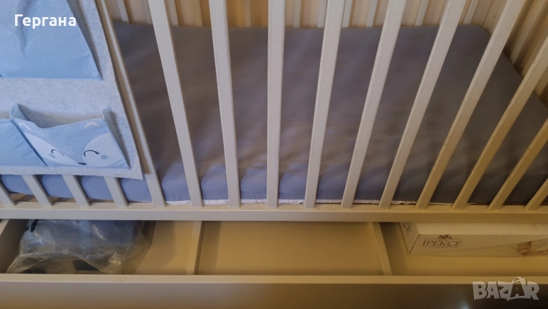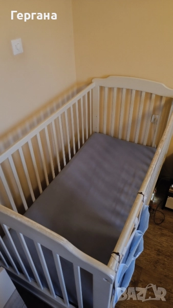 Дървена кошара на колелца с три нива на матрака, размер 70 на 140,в добро състояние, с чекмедже с три отделения. Купувана е втора ръка, но след пребоядисвана беше като нова. Има нужда от освежаване с нова боя на две от преградите, където главна се хващаха и държаха децата като се изправяха в нея и може и леки белези от зъбки да има на същите тези места. Върви с матрак с дунапрен и кокосови влакна. Предпочитам лично предаване за Стара Загора и района.