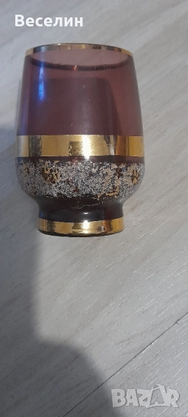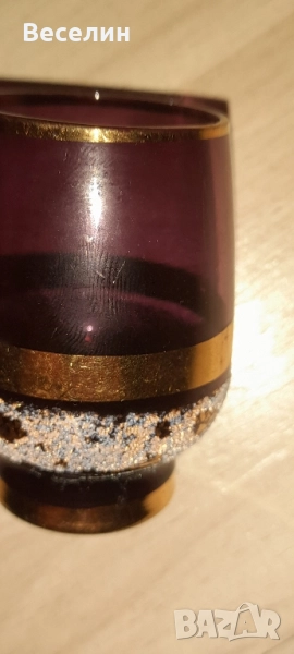 Прекрасни чашки за ракия цветно стъкло ръчна изработка перфектен дизайн ретро атр Винтидж за ценители пет броя височина 6,5 см вместимост 0,50 мл