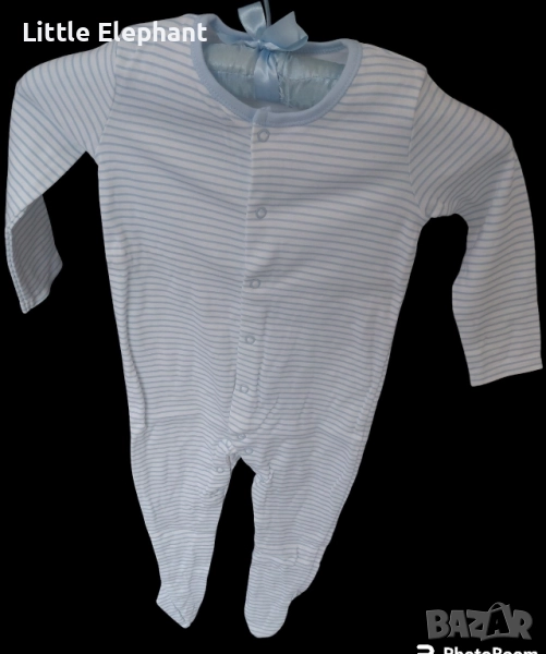 Цяла пижамка ромпърче за 9-12 мес момченце малко райе бяло и св.синьо,Англия/ново → Обява 51646152