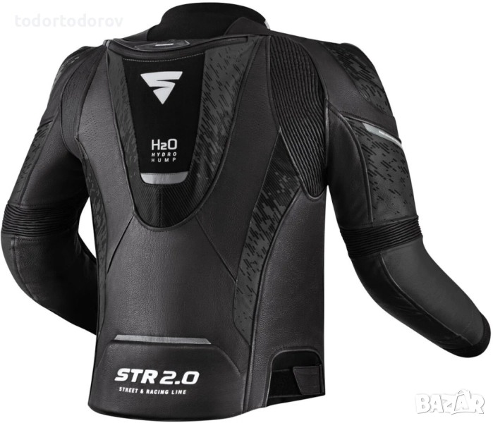 Якето STR 2.0 е изработено от първокласна кожа A+ за издръжливост и защита. Разполага с протектори за раменете, лактите и гърба ArmorPlus. Технологията DuoLayer Protection™ подсилва стратегическите зони, а аеродинамичната гърбица HYDRO-HUMP H2O е съвместима с опционалната система HydroBag за допълнителна безопасност и комфорт на пистата.
