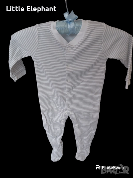 Цяла пижамка ромпърче за 9-12 мес момченце бяло и сиво райе,Англия/ново → Обява 51646181