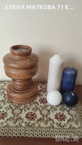 Уникален огромен свещник от масивно дърво много тежък/над 2 кг/+подарък подходяща свещ по избор от снимката