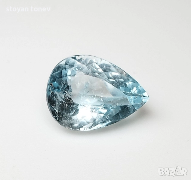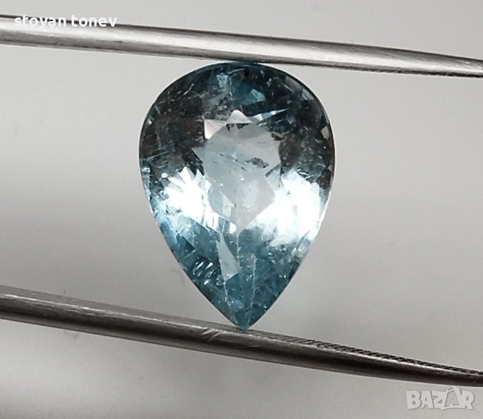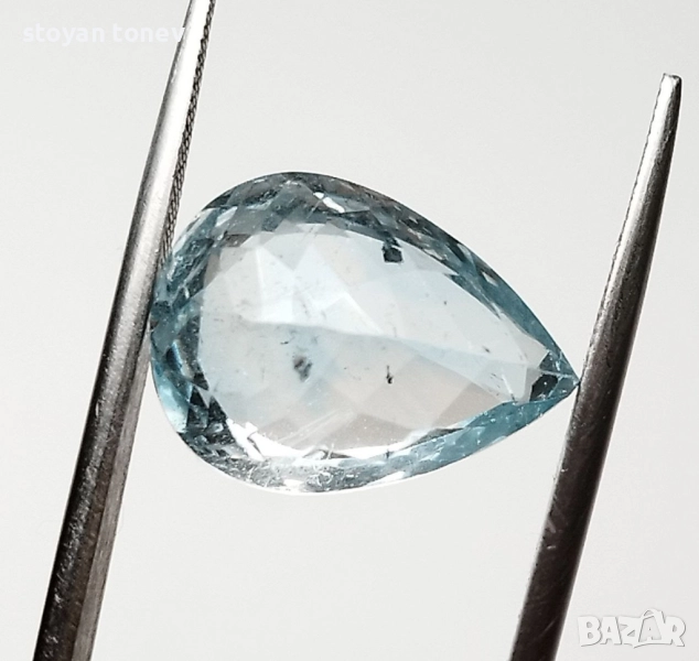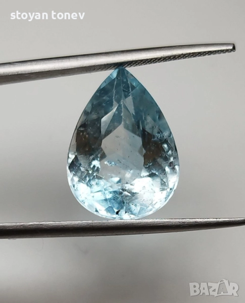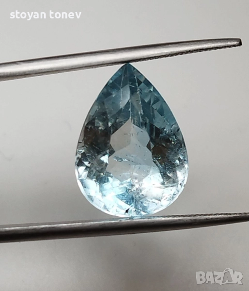 аквамарин с тегло 8.40 кт. и произход Бразилия. Чистота VS с минимални видими включения. Цвета е светло син. Форма круша с размери: 14.50 x 7.00 x 7.50 mm.. Ненагряван. Нетретиран.