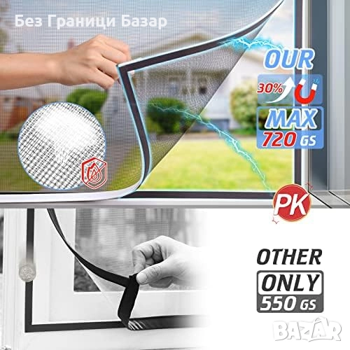 Нова Магнитна мрежа за прозорци против комари и мухи 130x150 см Лесен монтаж