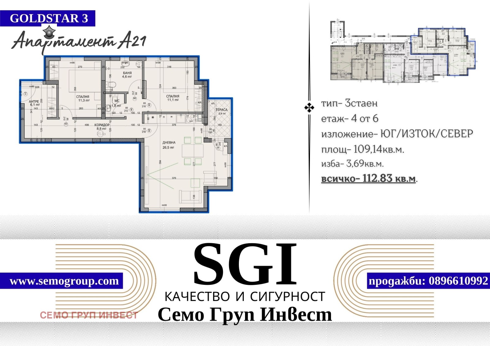 За повече информация и огледи се свържете с отдел Продажби на тел.: 0896 610 992 ние ще ви окажем пълна подкрепа и съдействие при избора на най-подходящия за вас имот.