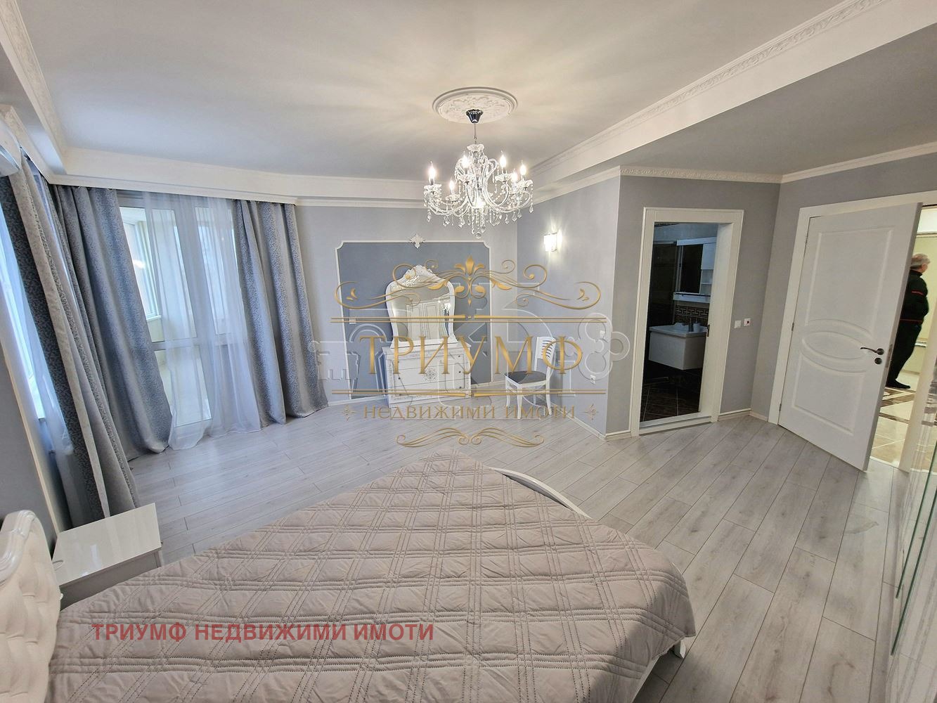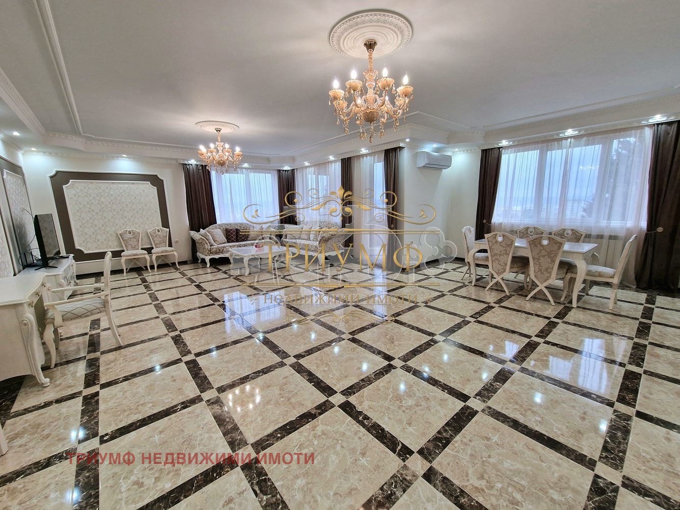Имоти Триумф Ви предлага под наем ЧИСТО НОВ 300кв.м апартамент в тих и спокоен район. Жилището е затворен комплекс със собствен двор без такса поддръжка