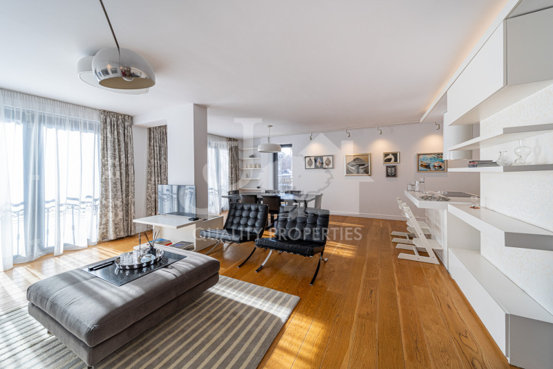 JJ Corporation предлагана Вашето внимание великолепен, просторен четиристаен апартамент, находящ се на една от най-хубавите улици в кв. Лозенец, а именно ул. Елин Пелин. Сградата е бутикова и се отличава с представителна фасада, фоайе, рецепция и 24 ч. охрана. Апартаментът е на 4-ти етаж, завършен по дизайнерски проект и се характеризира с функционално разпределение, качеството на използваните материали и прецизност към детайла. Имотът е обзаведен с много вкус и стил, отличава се със светли и просторни помещения, както и с прекрасните си панорами.