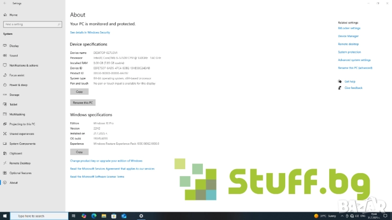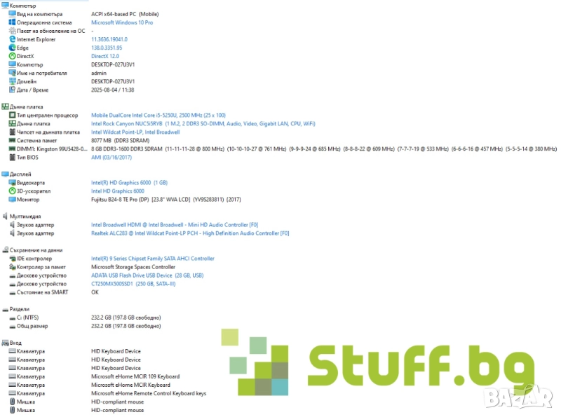 Портове: 1 x HDMI 1.4b, 1 x DisplayPort 1.4, 2 x USB 3.2 Gen 1, 2 x USB 2.0, 1 x RJ-45 Gigabit Ethernet, 1 x 3.5 audio combo jack