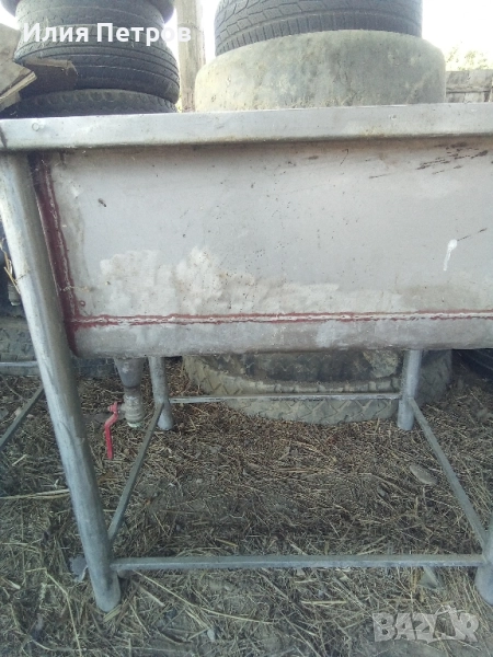 Вана неръждавейка с кран.Два броя . Вместимост 100 литра, използвани са за производство на сирене. Към тях мога да дам и форма с притискащ плот за формоване на сирене. Цената за тях е 50 лв за комплект.