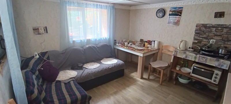 Светлият полусутерен се състои от антре, кухня с трапезария, санитарен възел, перално помещение и спалня. По вътрешно стълбище се достига до вторият етаж, където са разположени три спални и антре, от което се излиза на малка тераса и стълбищна площадка със стъпала, които водят към градината пред къщата. Имотът е годен за обитаване като има нова сменена кухня, електрически уреди и мебели, сменени врати и дограма. Предлага се с всичко налично.