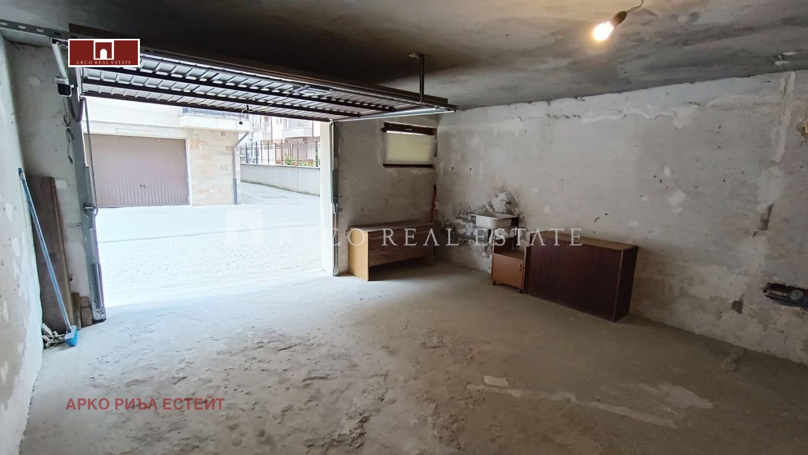 Гаражът е с чиста площ от 25 м2, с квадратна форма, дълбочина от близо 5 метра и височина 2,30 м. Намира се на партерно ниво в комплекс от две нови кооперации с контролиран достъп към двора, в който се намира, с автоматична врата и двете контролирани с дистанционно управление. Има самостоятелни партиди за ток и вода, оборудван е с мивка и има малък прозорец.