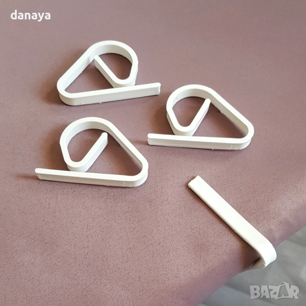 Пластмасови бели щипки за покривка за маса. Предпазват покривката от повдигане или “излитане” от вятъра. Малък практичен аксесоар за всеки дом.