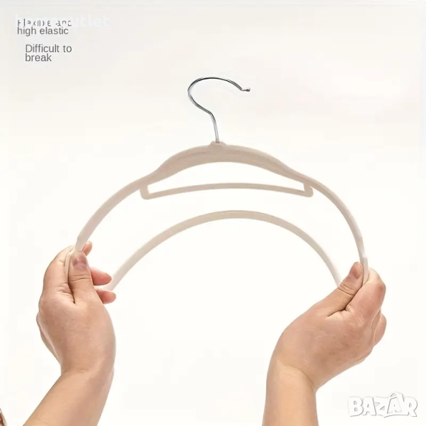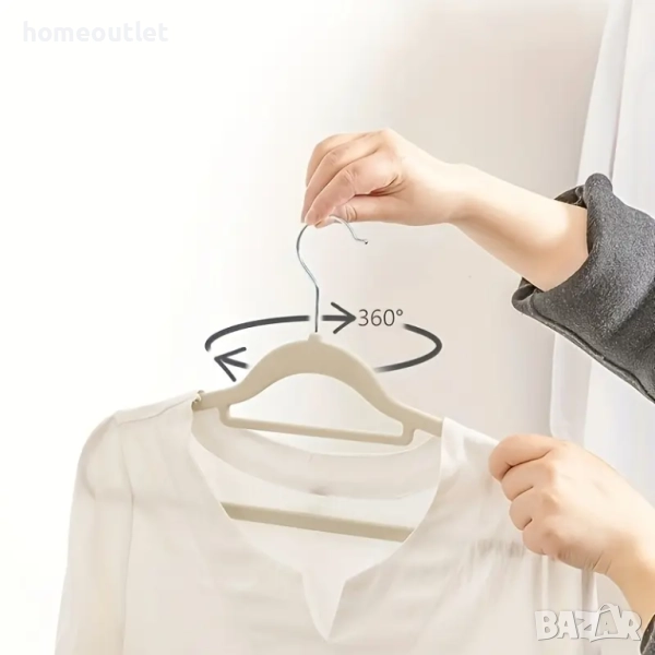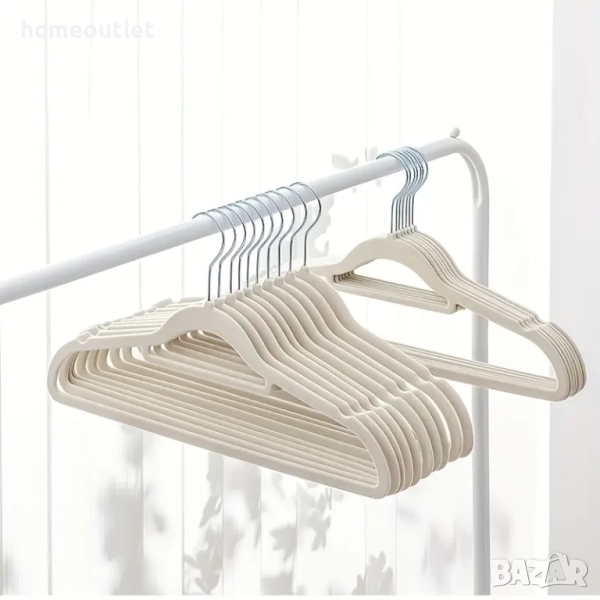 Изработени от здрав пластмасов корпус с висока устойчивост на натиск и покритие от мек кадифен текстил, закачалките осигуряват надеждност и стилен външен вид. Меката повърхност щади тъканите и не поврежда дрехите.
