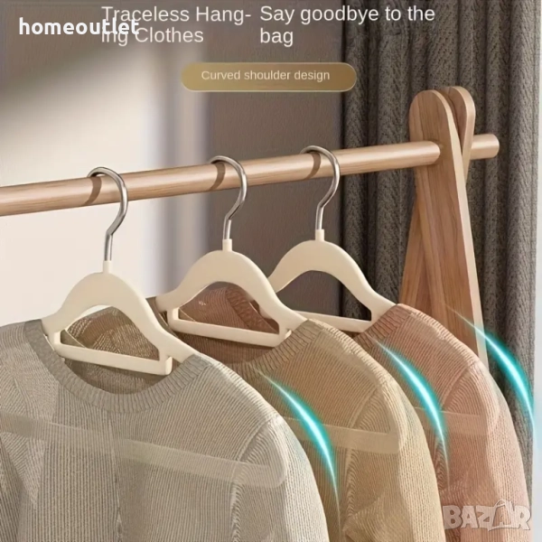 Кадифеното покритие предотвратява плъзгането и изпадането на дрехите, като същевременно не оставя следи от закачане.