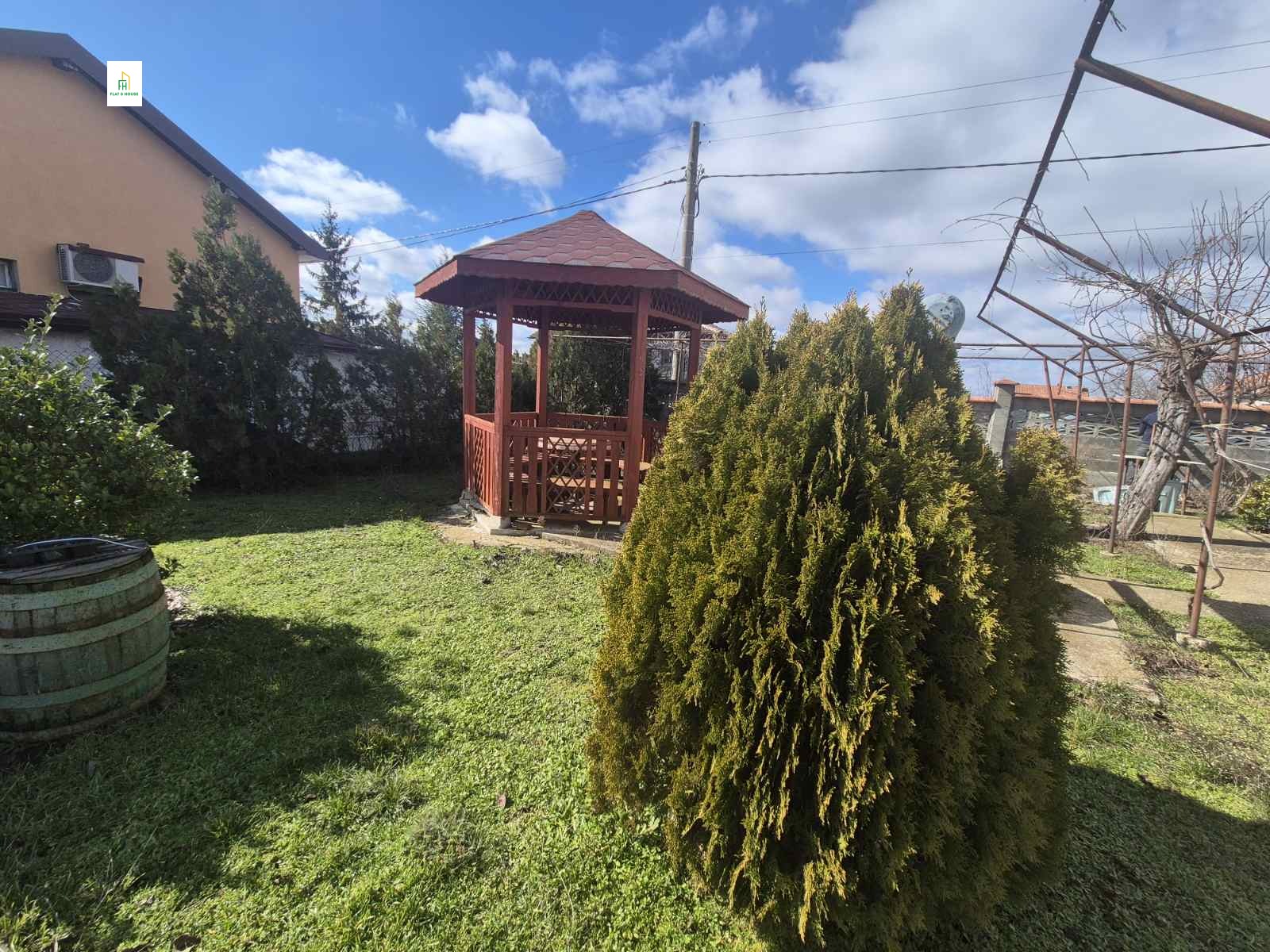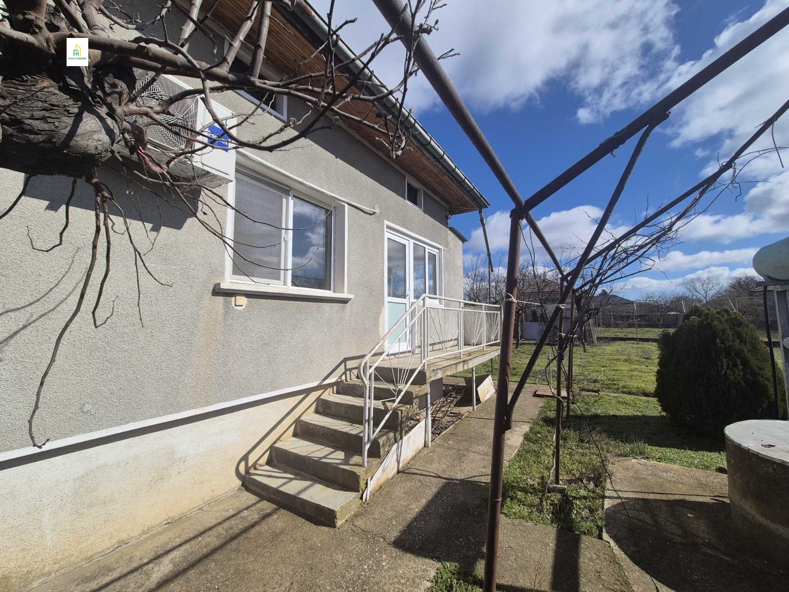 В парцела е построена тухлена къща на две нива, която е в добро състояние и може да бъде обновена според вашите предпочитания. Покривът е здрав, без течове. Част от дограмата е сменена с нова. Къщата разполага с три стаи, както и вътрешна баня с тоалетна. Има и монтирани климатици.