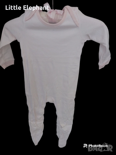 Цяла пижамка тънко райе за 9-12 мес момиченце,бяло и розово,Англия/нова → Обява 51654172