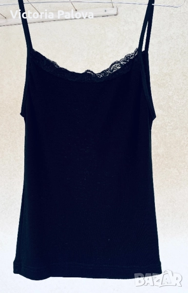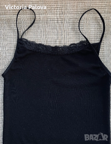 Неизползван красив потник от тънка еластична мериносова вълна - лек, дишащ, уютен. Брандът е от Нова Зеландия, известен с висококачествени дрехи, с богати традиции в производството на вълна. Потникът е с дантела отпред, ластични презрамки ( комфорт), разтеглив, дължина - 60см, ГО - 40см.