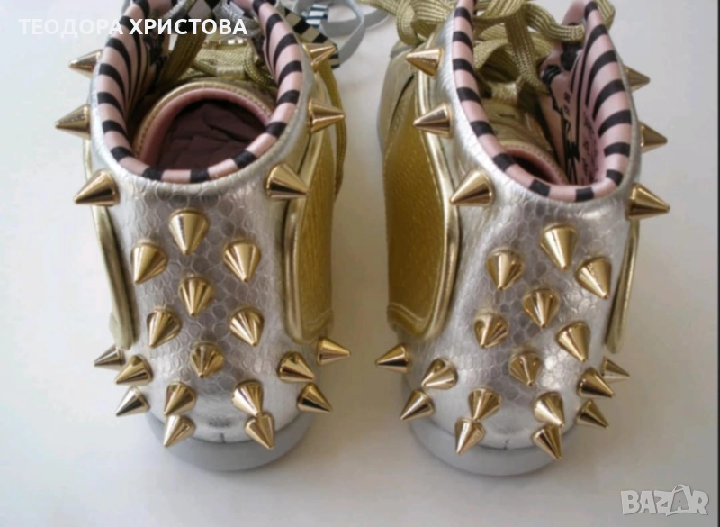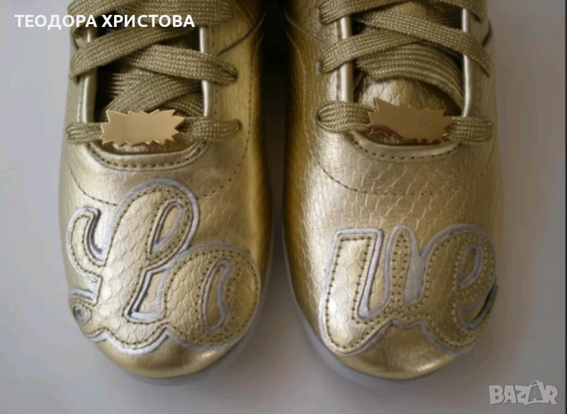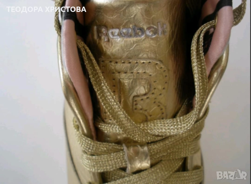 REEBOK CLASSIC BETWIXT MID MELODY EHSANI РАЗМЕР 39, стелка 25,5см. Горна част от релефна кожа с питонова шарка- розов сатенен хастар - текстилна подплатена стелка - 3D ULTRALITE гумена подметка - златен акцент с шипове на петата - златна лента отпред с бродирано „LOVE“ отгоре. Три чифта връзки: Златни, черно-бели рае, сребристи. Нови, с кутия.