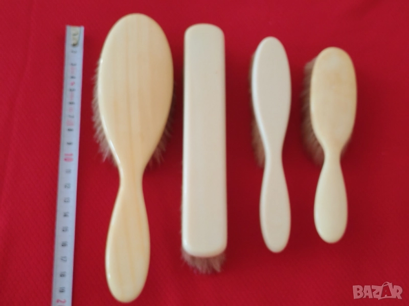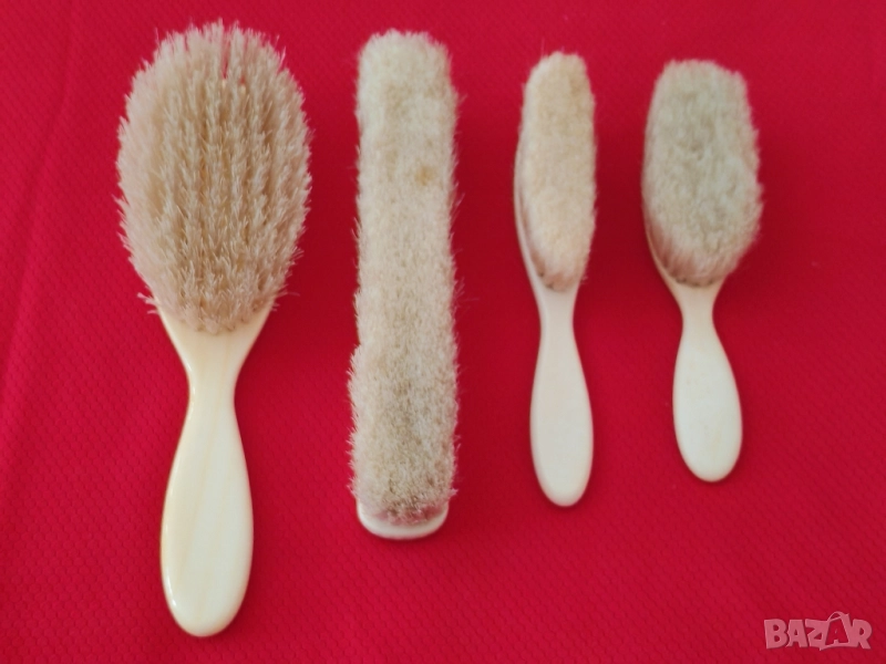 Комплект четки за дрехи,коса и обувалка от слонова кост. Производство края на 18, началото на 19 век. Четките са с естествен косъм, различна дебелина и твърдост. В отлично състояние, неразличими от нови. Не се продават отделно. Еконт, Спиди, лично предаване. Телефон за връзка 0885776829.