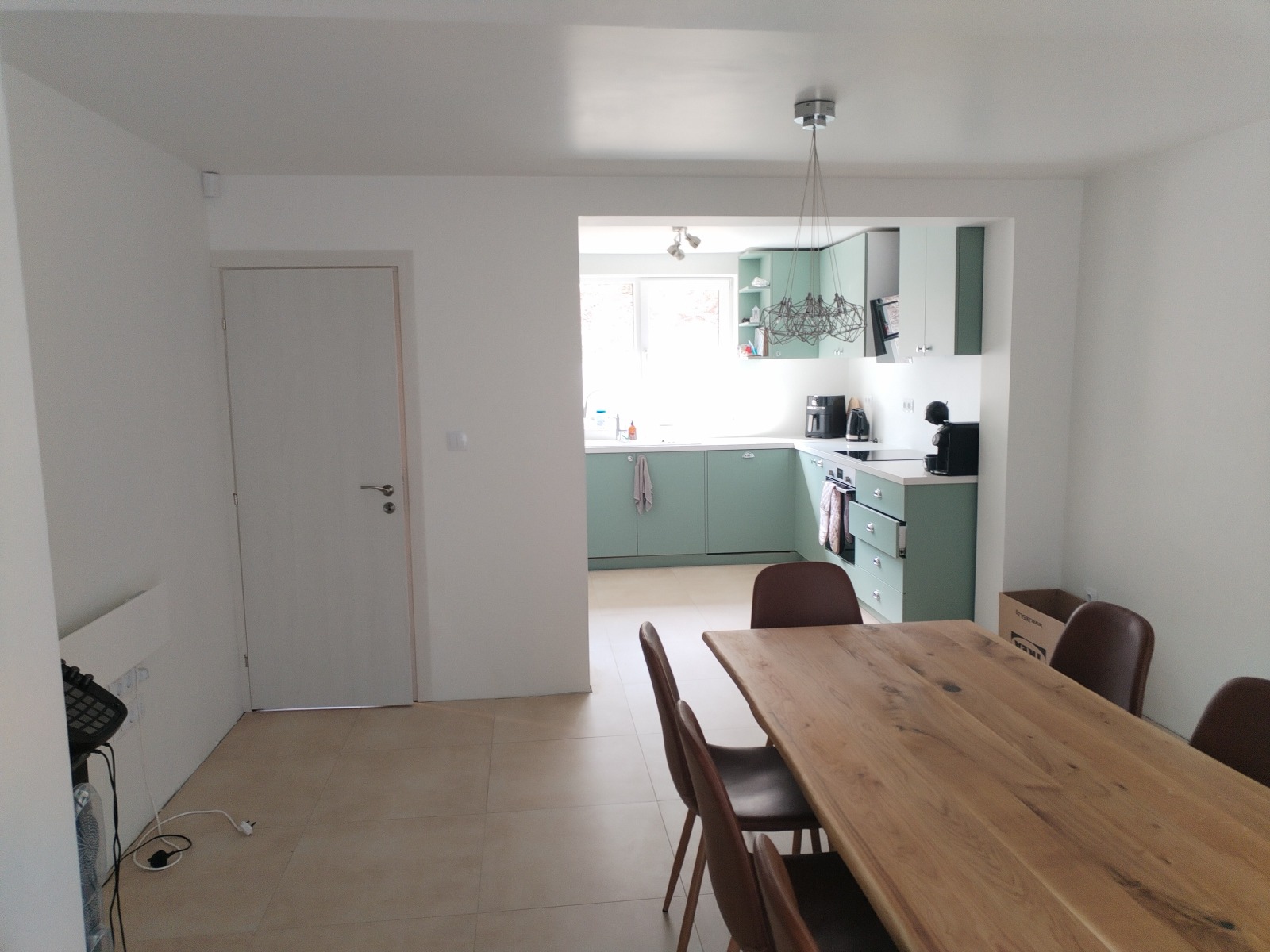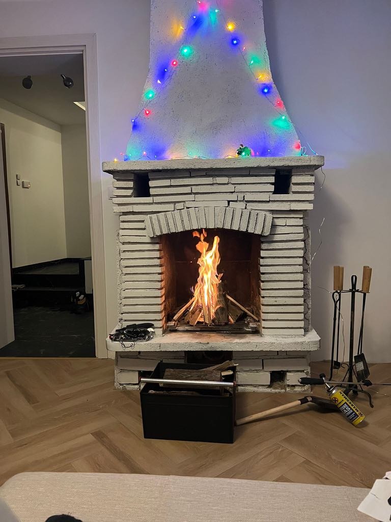 Първи етаж - входно антре, кухненски бокс с просторна дневна, отделна стая с камина, баня с тоалетна.
