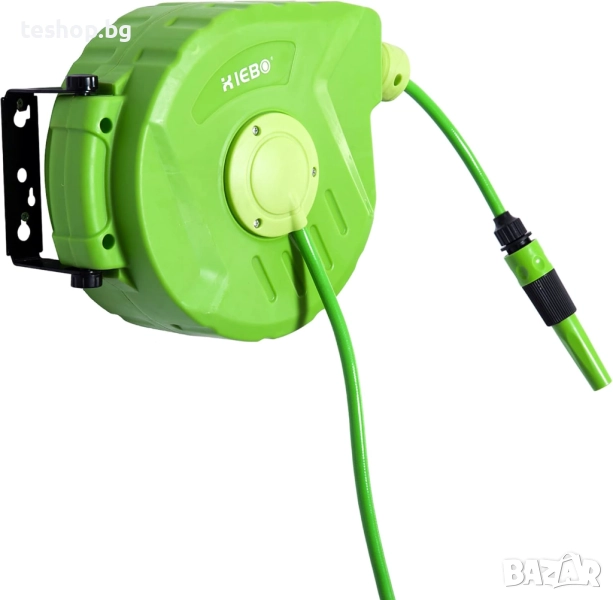 ЗЕЛЕНА МАКАРА ЗА МАРКУЧ - Безопасно предпазва вашия градински маркуч и елиминира необходимостта от ръчно навиване. Идеалният помощник за градинарство и поливане.