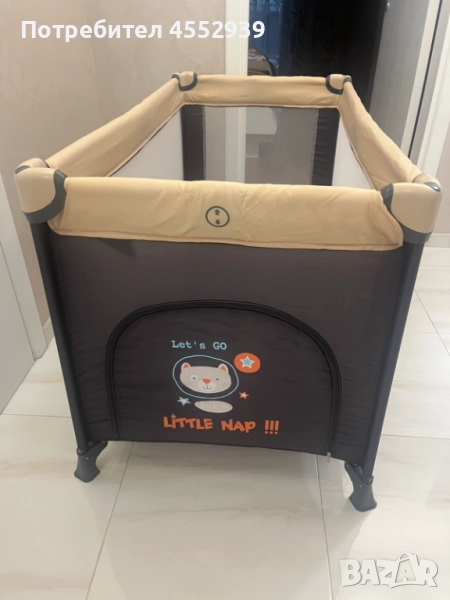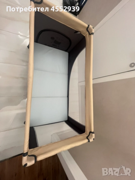 Детска преносима кошарка със сгъваемо матраче. 120 /75/60 см. Ползвана е един единствен път при пътуване. Няма никакви забележки и следи от употреба. Компактна за изпращане, има си калъф за пренасяне