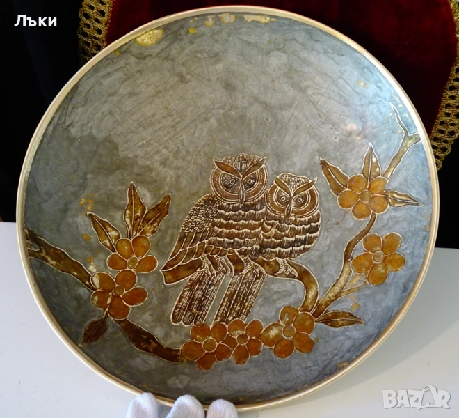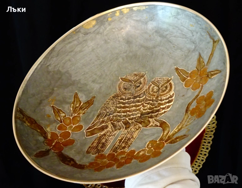 бронз.Декорирана с релефно изображение на две Сови,кацнали на разцъфнали