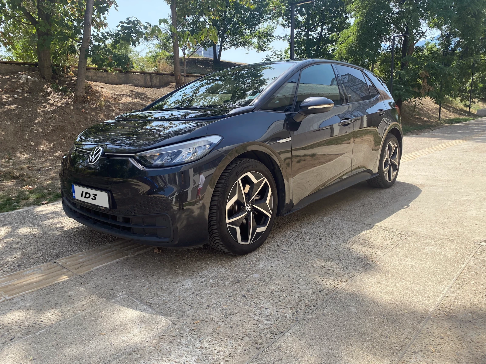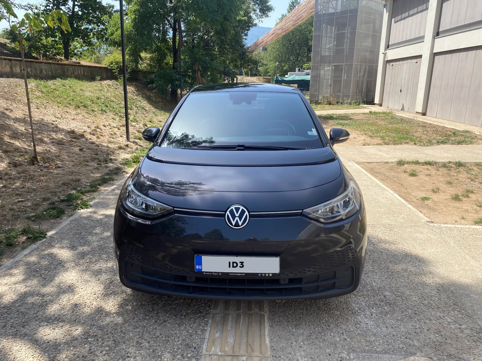 VW ID3 PRO First с WLTP пробег от 420 км. с проверено техническо състояние от сервиза на VW в София. Предлаган от DasWeltAuto България с валидна гаранция на батерията до достигане на 160 000 км. Автомобила е каран малко, за предвижване в София, полиран е изцяло и е положена керамична вакса за защита. Разполага и със следните екстри: Front Assist и Lane assist Теглич Навигационна Система Car-Net Безключов достъп и безключово палене " Keyless-Go" - Безключово палене ACC Premium Адаптивен круиз контрол до 210 км/ч с включен Front Assist и Emergency city brake Алуминиеви джанти 19" Bluetooth App Connect с Apple car play и Android Auto Volkswagen Media Control Дигитално табло Active Info Display Втори комплект гуми с джанти Затъмнени задни стъкла Мултифункционален кожен волан Auto-Hold-Функция Електрически огледала с подгрев и прибиране Амбиентно интериорно осветление с режим на смяна на цветовете