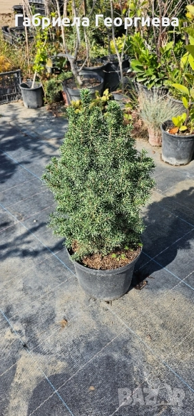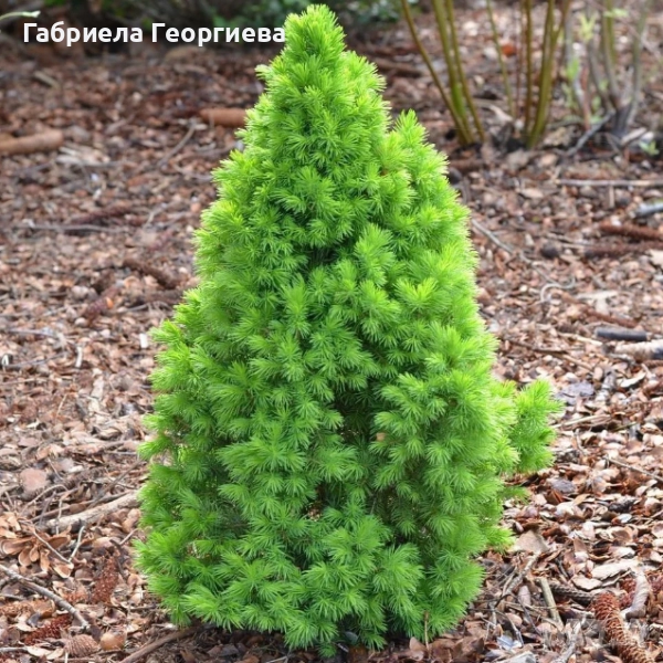 Picea glauca 'Conica' декоративно, вечнозелено, бавнорастящо иглолистно дърво с компактна конична форма, което достига до около 1-3 метра височина и е популярно за алпинеуми, контейнери и малки градини. То предпочита слънчеви или полусенчести места.