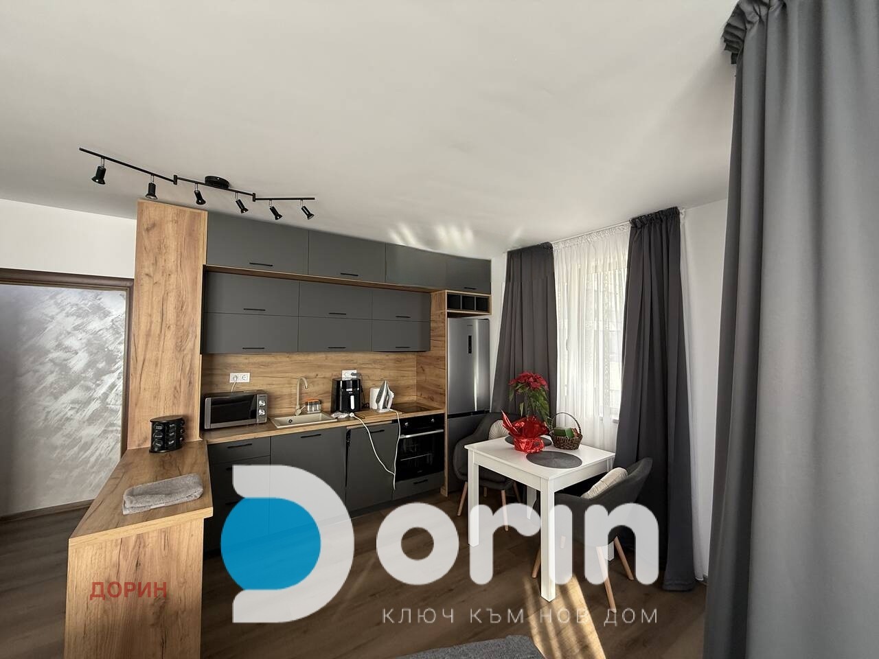 Агенция Дорин Ви предлага модерно обзаведен тристаен апартамент с всички необходими ел. уреди за живеене.Две спални,хол с кухня,баня и тоалетна,перално помещение.