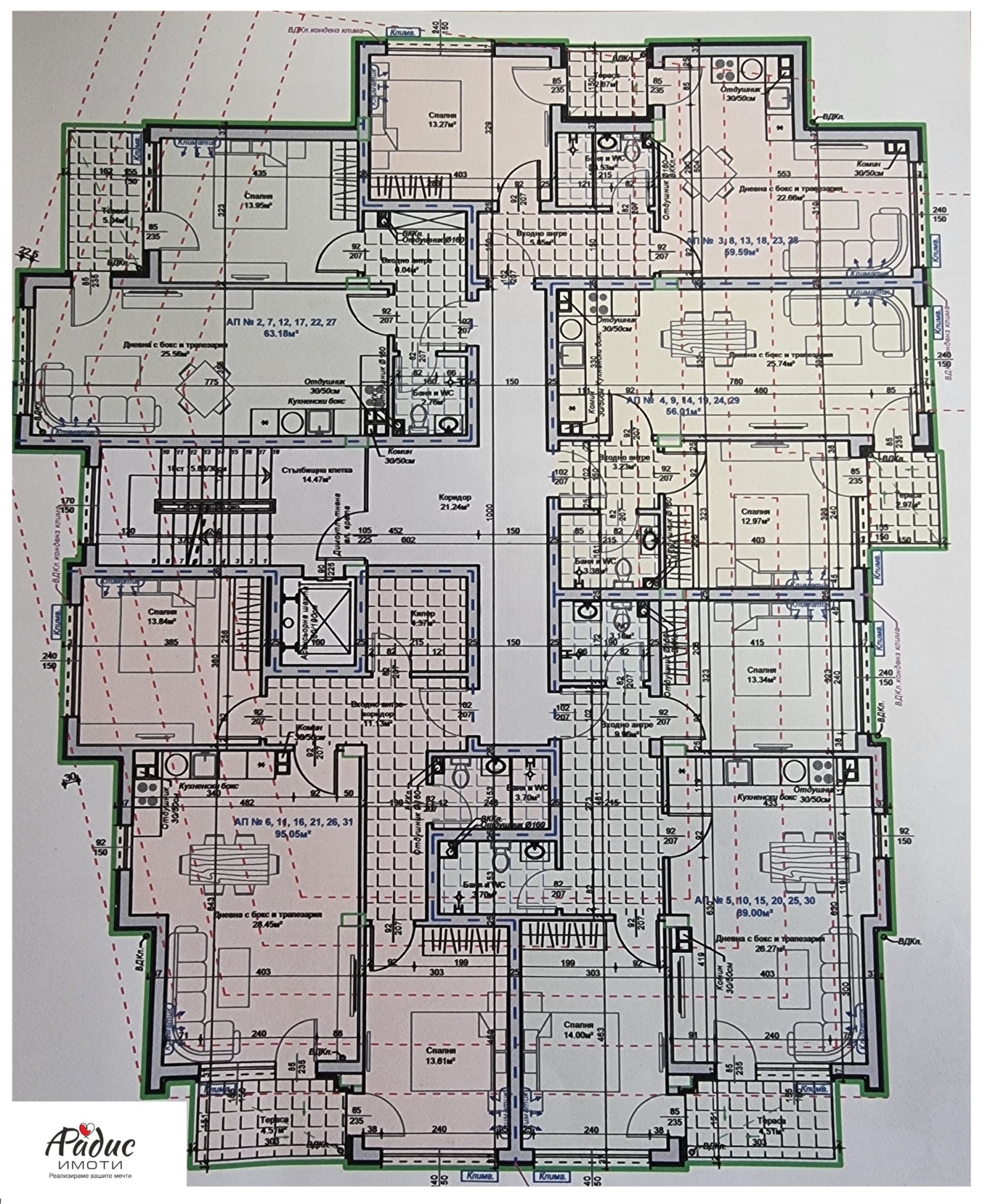 Налични за продажба са двустайни и тристайни апартаменти, гаражи и паркоместа.Възможност за обединение на апартаменти.