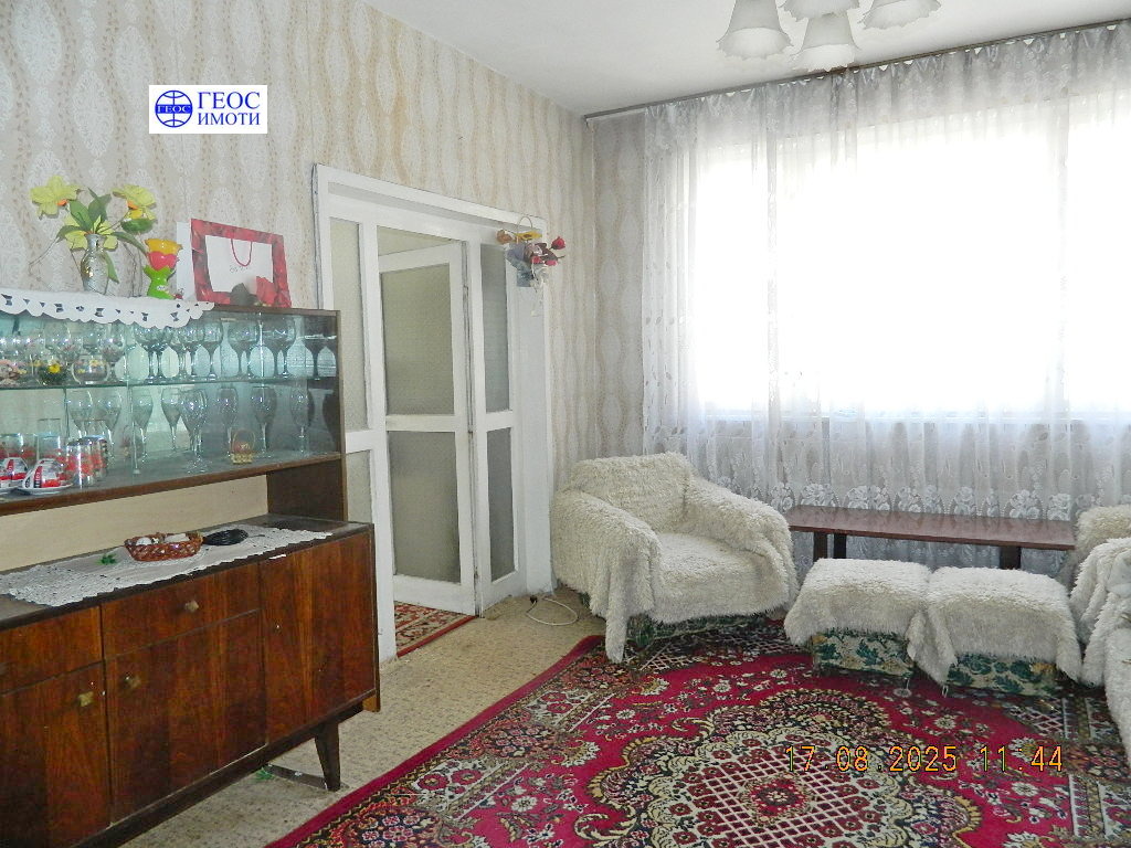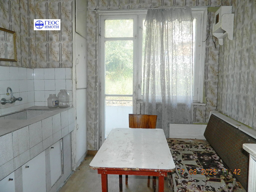 Продава се четиристаен апартамент, находящ се в най-привлекателната част на квартала, на втори етаж със застроена площ 88,24 кв.м. Състои се от входно антре, кухня с тераса, хол с тераса, преходна спалня с тераса и отделно втора спалня, и баня с тоалетна. В цената влизат и избено помещение със светла площ 12,90 кв.м., както и таванско помещение със светла площ 17,63 кв.м. Жилището се нуждае от основен ремонт. Цената подлежи на коментар.