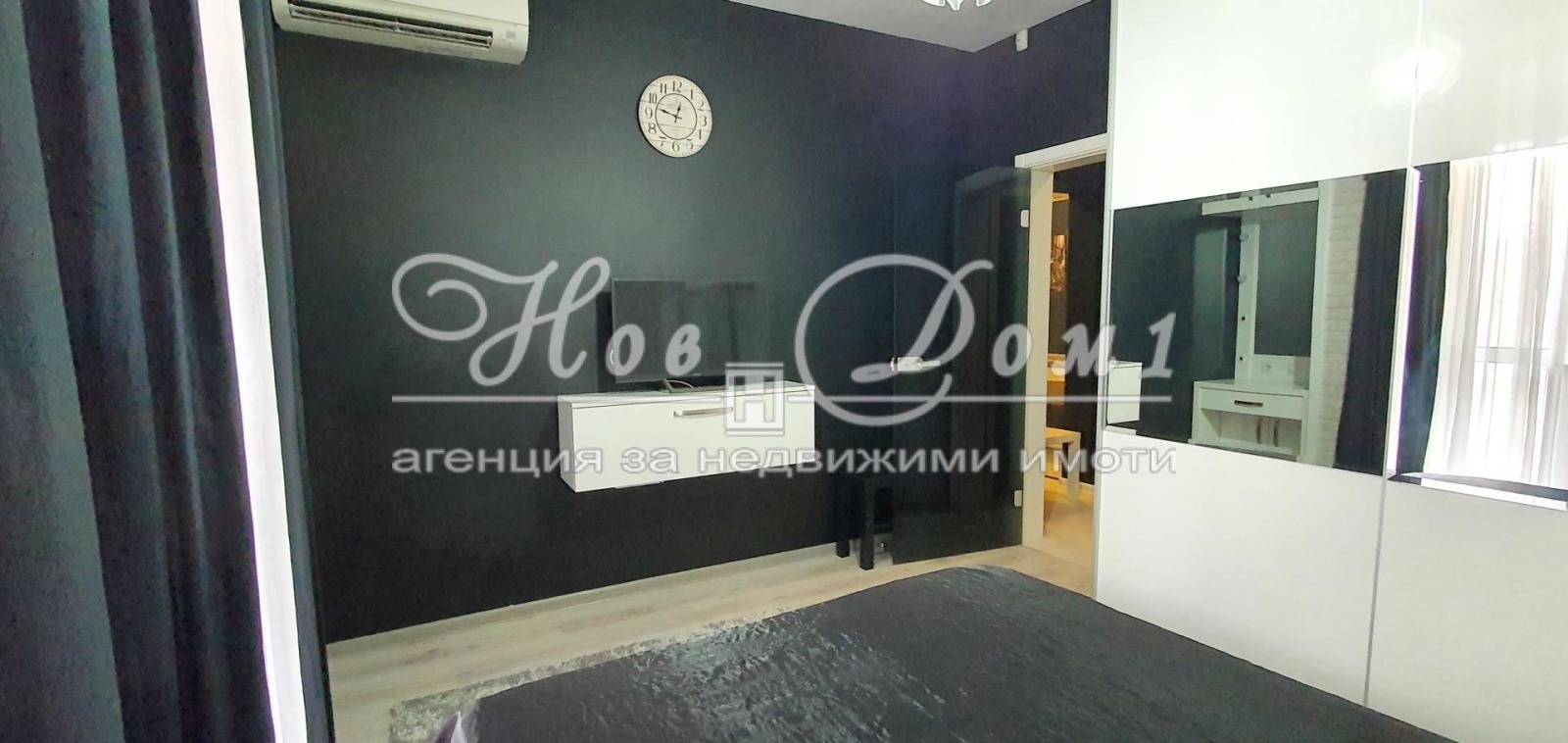 Състояние: Имотът се предлага напълно Обзаведен : Портманто и гардероб в коридора; напълно оборудвана баня и тоалет; кухненски шкафове изработени по поръчка , както и всички вградени електроуреди; хладилник с фризер; съдомиялна; луксозна холна гарнитура , маса за кафе , секция и маса за хранене в комплект с 8 броя столове. Спалня с 2 нощни шкафчета , скрин и гардероб. Телевизори и климатици 3 броя, във всяка стая. Пералня и сушилня.